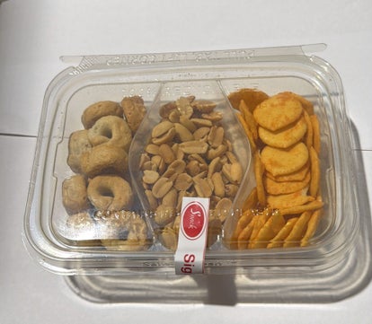 Snack messicano's, rice crackers piccanti e arachidi saporite alla paprika.